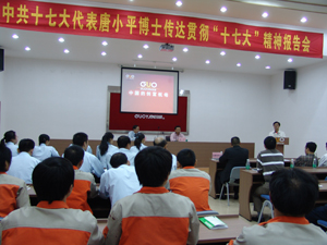 報(bào)告會(huì)上,唐博士暢談了參加十七大會(huì)議的親身感受以及自己對(duì)十七大報(bào)告的理解。整個(gè)十七大報(bào)告是對(duì)過去成果的總結(jié),對(duì)當(dāng)前理論的系統(tǒng)闡述,對(duì)今后建設(shè)任務(wù)的描述,對(duì)未來的努力方向有著明確的指引。唐博士高度概括了十七大精神,認(rèn)真詳細(xì)的向與會(huì)的員工宣講了中共中央在十七大的重要決策和會(huì)議精神。他的報(bào)告極大地激勵(lì)鼓舞了員工的士氣,為國(guó)研機(jī)械在今后推動(dòng)企業(yè)科學(xué)發(fā)展,構(gòu)建和諧企業(yè)指明了努力的方向。隨后,天河區(qū)珠吉街黨工委書記黃澤鵬作了總結(jié)講話。