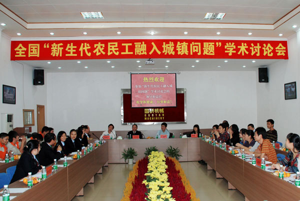 11月8日上午,由廣州市社會科學屆聯合會、廣州大學廣州發展研究院、廣州大學人權研究中心主辦的全國新生代農民工融入城鎮問題學術研討會在廣州市國研機械設備制造有限公司隆重召開。中國社科院及全國多所知名高等院校專家、學者齊聚一堂,就新生代農民工融入城鎮問題與我司員工代表暢所欲言、各抒己見,展開了熱烈的討論。